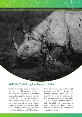 smuggling of exotic animals. Traffick- such as Kolkata, Chennai, Mumbai,