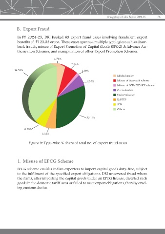 Figure 9: Type-wise % share of total no. of export fraud cases