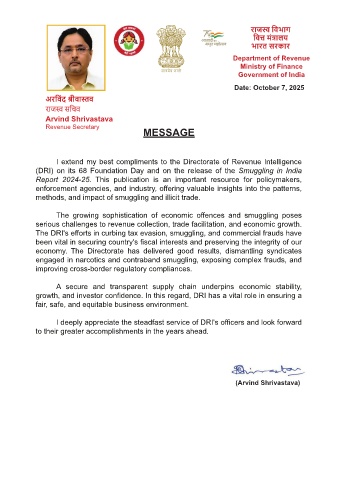 (DRI) on its 68 Foundation Day and on the release of the Smuggling in India